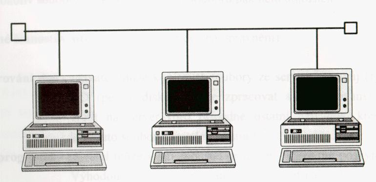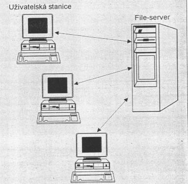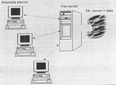 Na file serveri sú umiestnené zdieľané súbory (vrátane databázových súborov). Spracovanie prebieha na užívateľských staniciach.