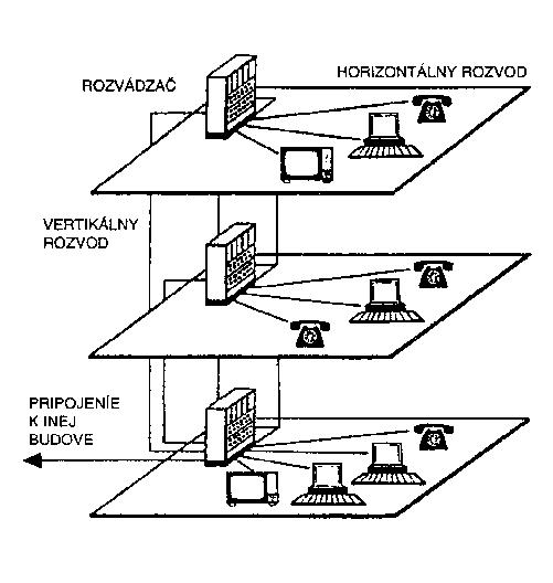 Pri prvých elektrických rozvodoch bol kábel vedený priamo k spotrebiču, o niečo neskôr sa silnoprúdový rozvod sa stal integrálnou súčasťou stavby a miestnosti sa začali štandardne vybavovať zásuvkami. Analogicky k tomuto rozvoju prebieha aj rozvoj káblových káblových rozvodov pre lokálne dátové stiete. Na ich inštaláciu by sa malo myslieť vždy už pri projektovaní budovy presne tak, ako sa myslí na silnoprúdový rozvod vrátane vybavenia dátovými zásuvkami. Pre kabeláž v budove môžeme počítať s týmito typmi káblov: koaxiálny, optický a káble na báze krútenej dvojlinky. Štruktúrovaný kabelážny systém sa skladá z pasívnych prvkov pre prenos signálu (káble, konektory) a z montážnych a nosných častí (rozvádzače, prepojovacie panely, zásuvky, káblové žľaby, inštalačnétrubky, nosníky, závesy). Základným rysom štrukturovaného kabelážneho systému je univerzálnosť, ktorá zabezpečuje inštaláciu kabelážneho systému nezávisle od aplikácií, ktoré sa budú neskôr realizovať. Aktívne prvky siete (opakovače, smerovače, rozbočovače a pod.) nie sú priamou súčasťou štrukturovaného kabelážneho systému, ale sú bežnou súčasťou lokálnej komunikačnej siete.