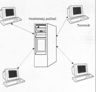 Celé spracovanie prebieha na hostiteľskom počítači, terminály slúžia iba na komunikáciu s užívateľom.